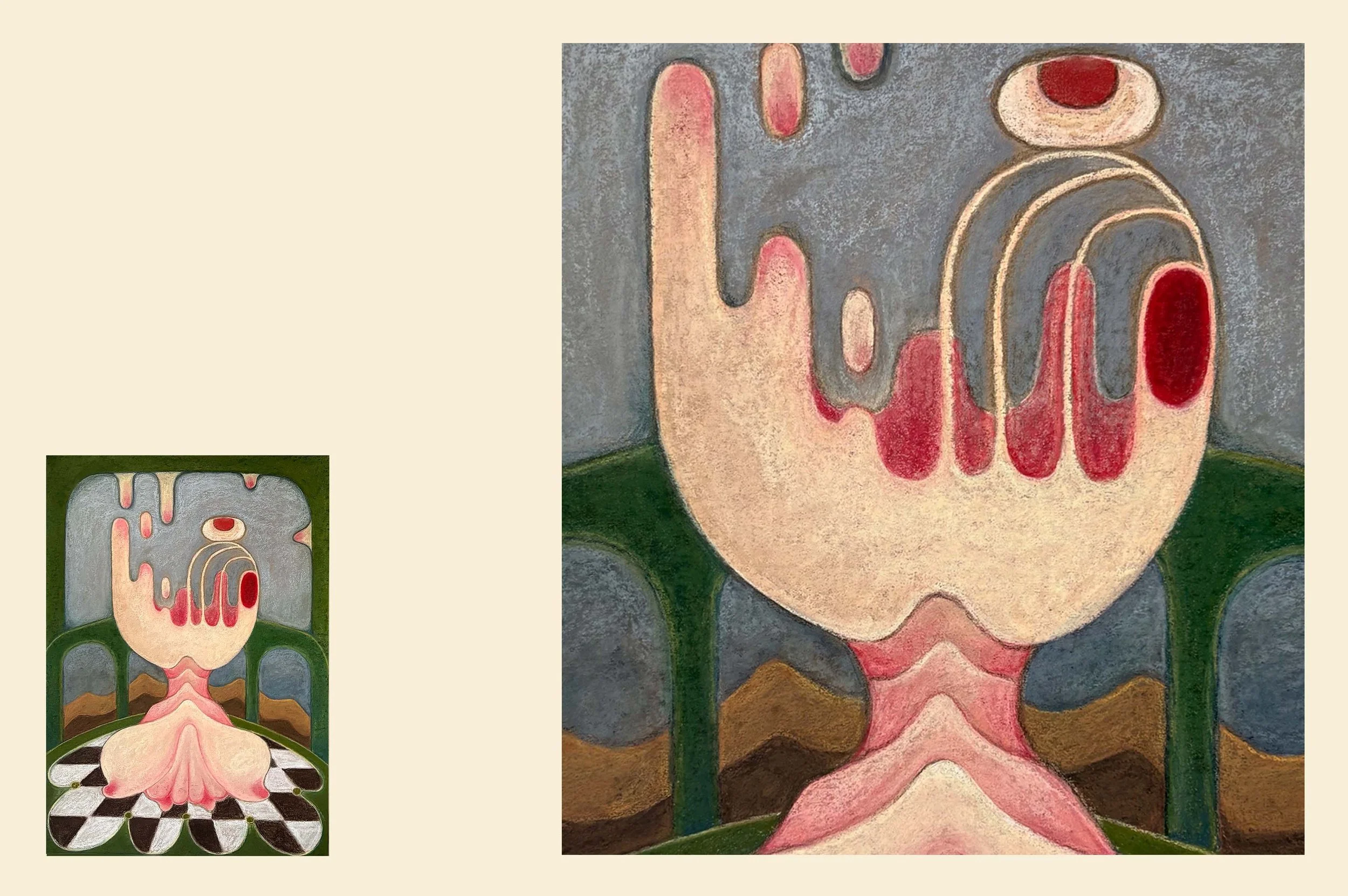 “I have been thinking a lot about where my forms live and it’s leading me to strange new places within my own imagination. Here, the space is vast and I can see them sprouting from the ground, surging upwards, bulging sideways, and morphing into more incomprehensible shapes. Slowly drifting into sleep, I whisper to myself, when I wake up, I want to remember this and under this light veil of dreams, I seek without explanations and leave the burdensome task of rationalising for later.”